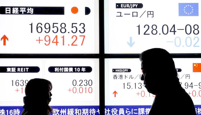 On the Tokyo Stock Exchange, there were 2,205 stocks that went down and 1,310 that went up, with 249 stocks staying the same.