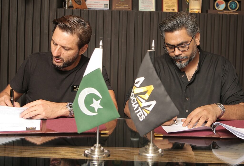 Islamabad:- AAA Associates, one of Pakistan’s most leading and prominent companies, particularly among professional real estate associations, has announced that it has signed Shahid Khan Afridi, one of Pakistan’s most prolific cricketers from the former national team, as its brand ambassador. The Mou signing was done on 22nd August, 2022 at the Main Head Office of AAA Associates. According to the MoU Mr. Shahid Khan Afridi will the exclusive brand ambassador of AAA Associates’ Grand project AAA Octa Karachi in the sought-after location in Bahria Town Karachi.